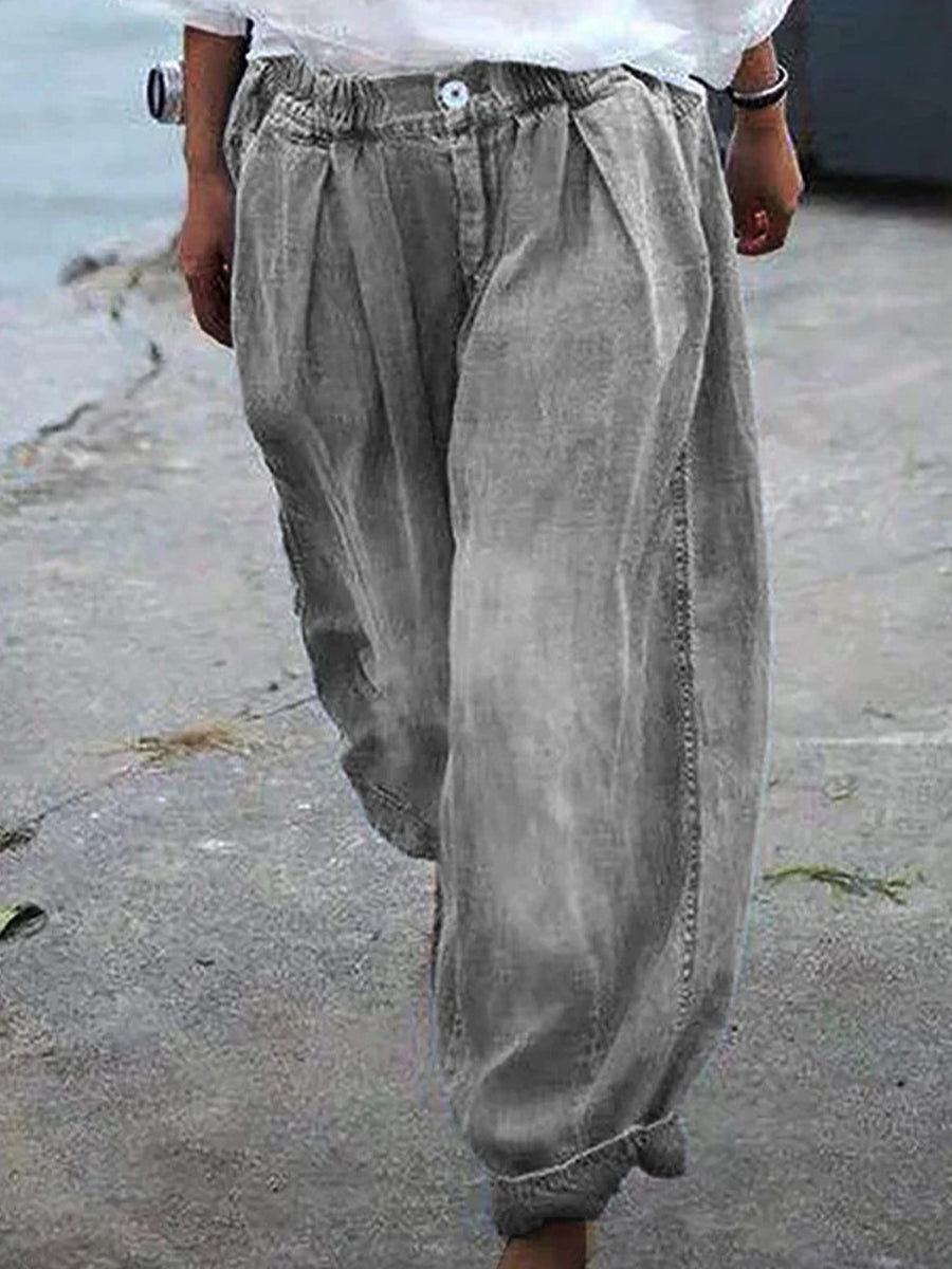 Дамски ретро деним изкуствена деним цъфтеж панталони