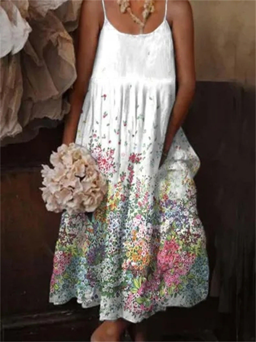 Дамски цветни изкуство печат случайни каишка курортна рокля