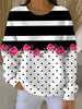 Дамски шик черно-бяла ивица & полка точка роза суитчър
