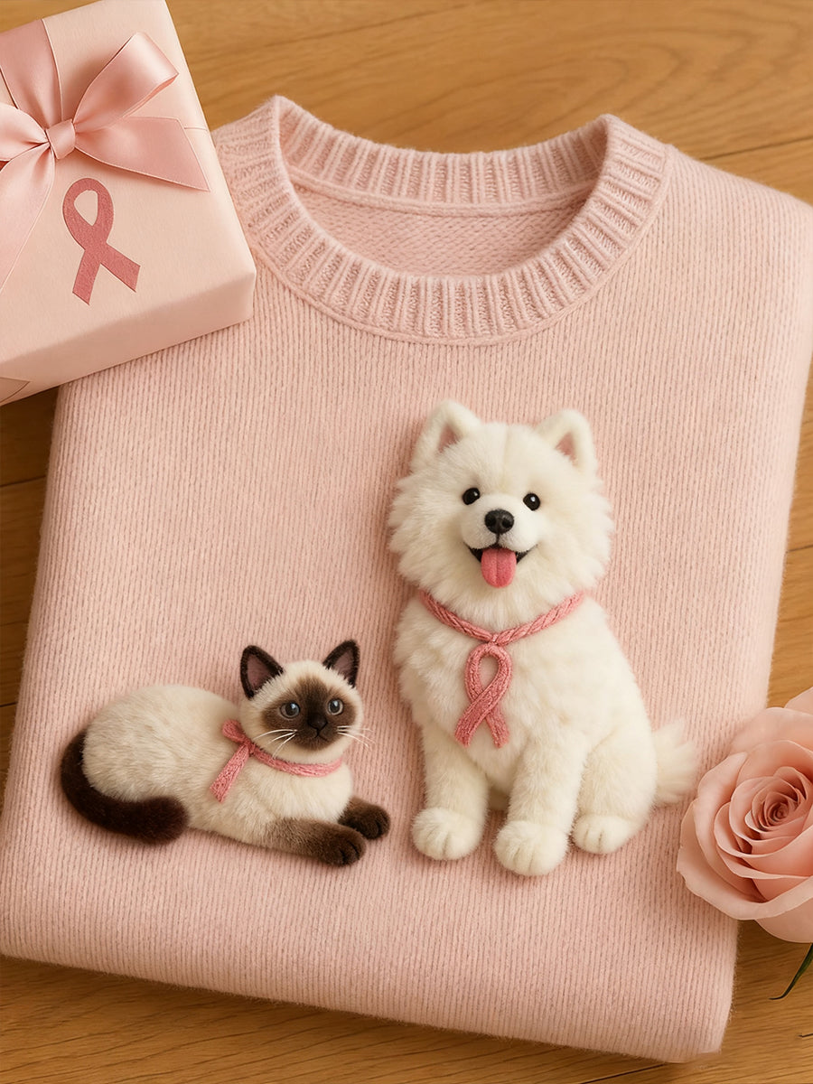 Жените артистични животински печат комфорт плетене къс ръкав отгоре