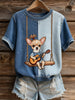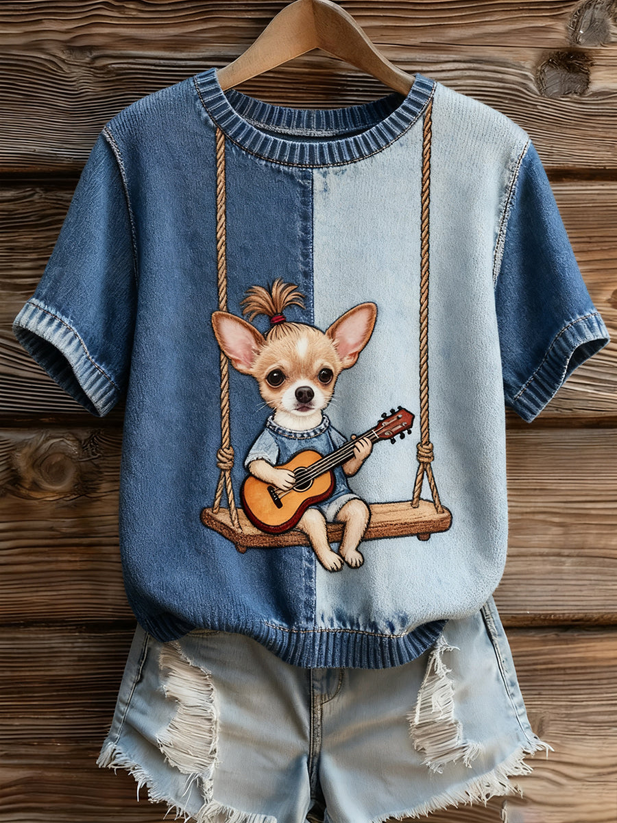 Жените артистични животински печат удобен плетене с къс ръкав отгоре