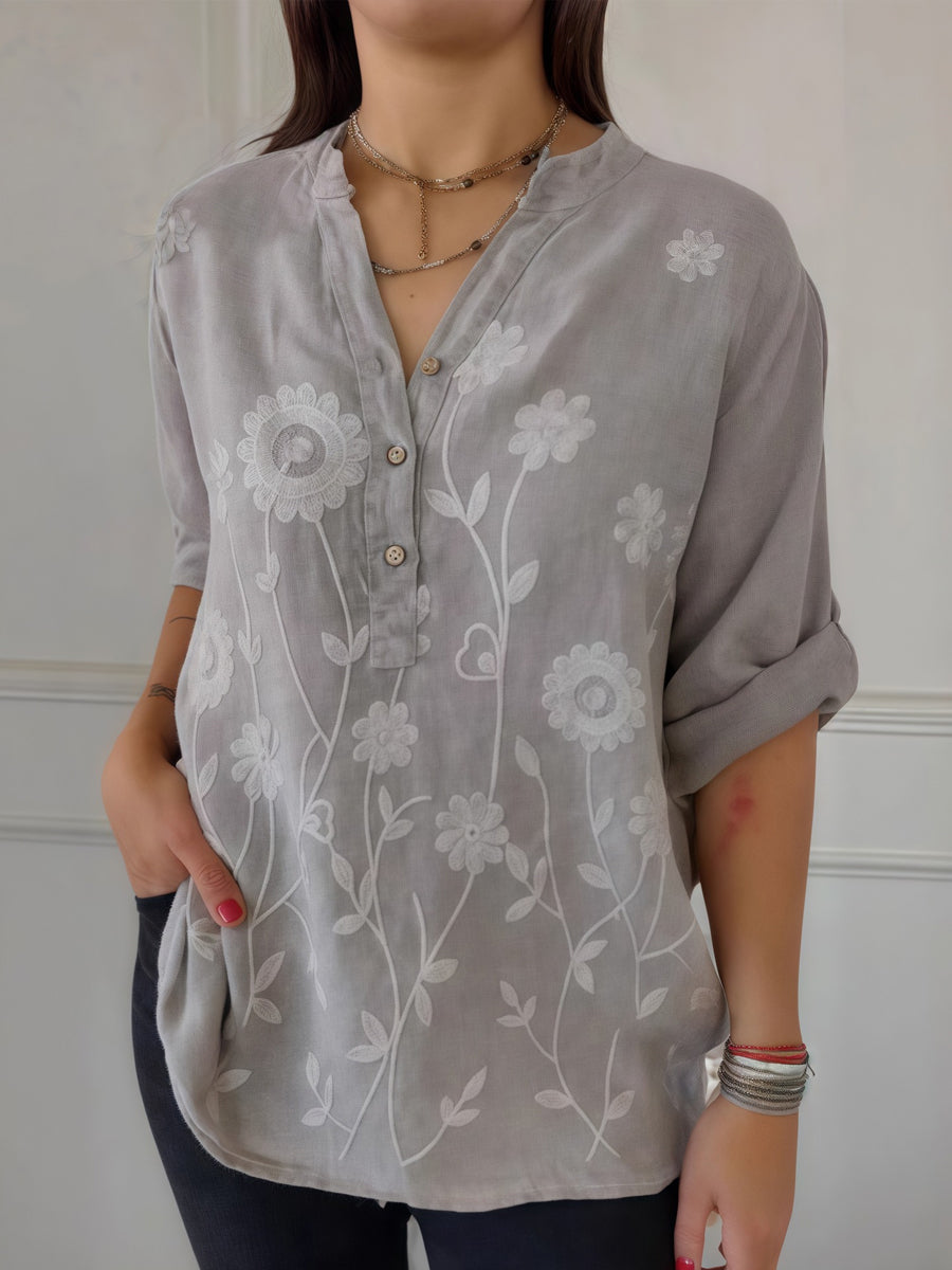 Мъжки ретро етнически печат висока яка половин цип дълъг ръкав отгоре