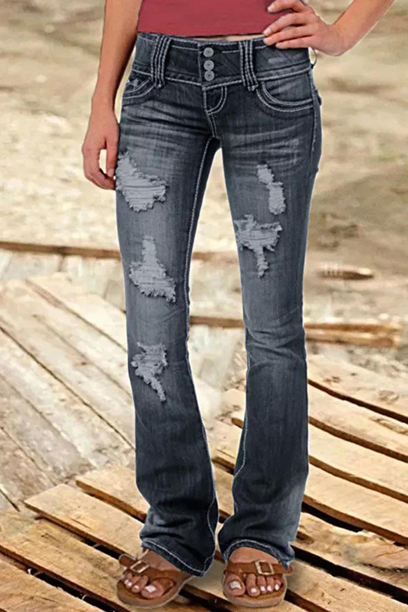 Жените деним нисък ръст реколта ниско покачване изтръгнат бутон дънки