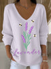 Жените лавандула цветна бродерия светло лилаво v-врата пуловер
