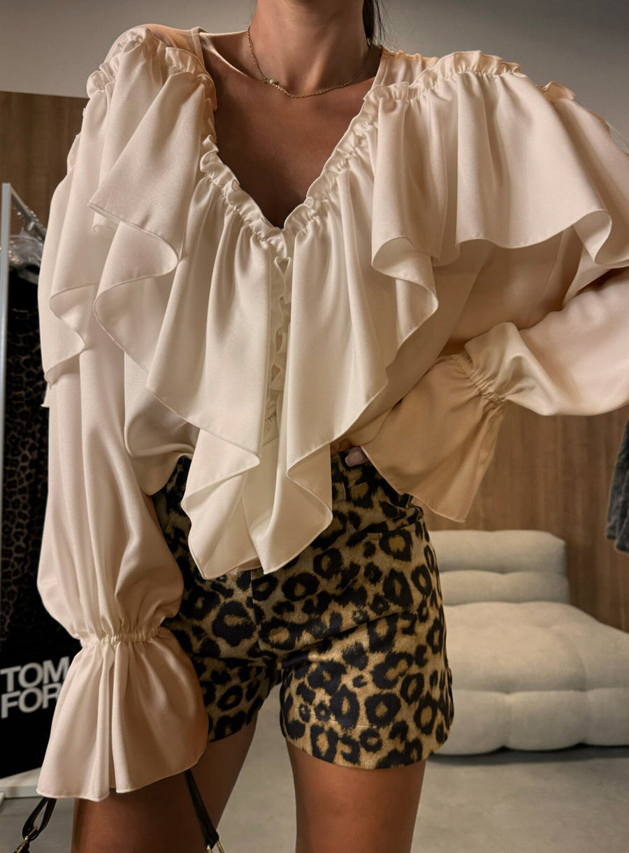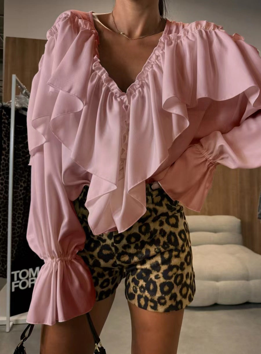 Жените плътен цвят моден дизайн с дълъг ръкав риза