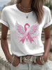 Жените рак на гърдата панделка крила sequin печат случайни тениска