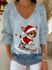 Жените реколта коледа животински печат случайни дълги ръкави топ