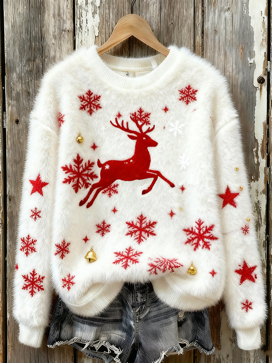 Жените реколта коледа изкуство печат уютен фланел суитчър