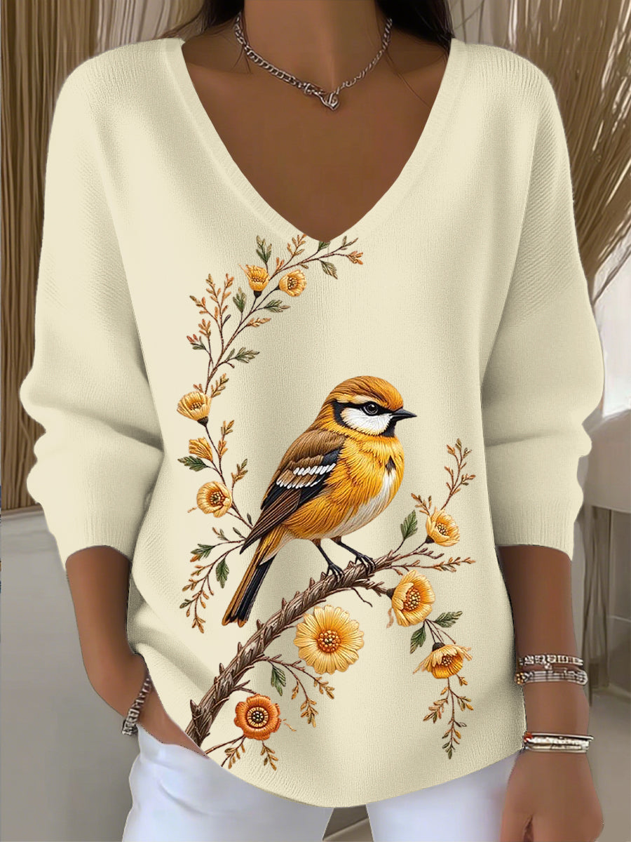 Жените реколта птица и цветя изкуство v-врата отгоре