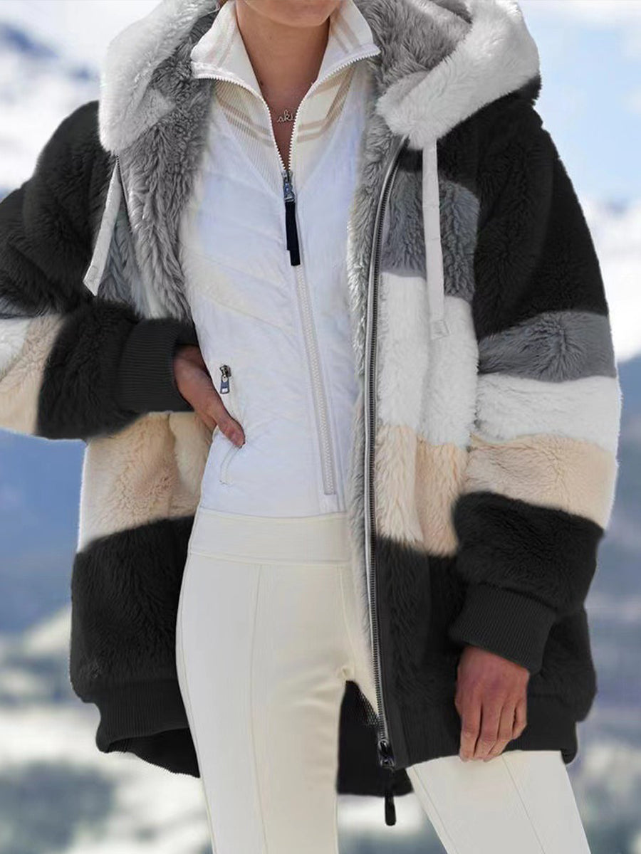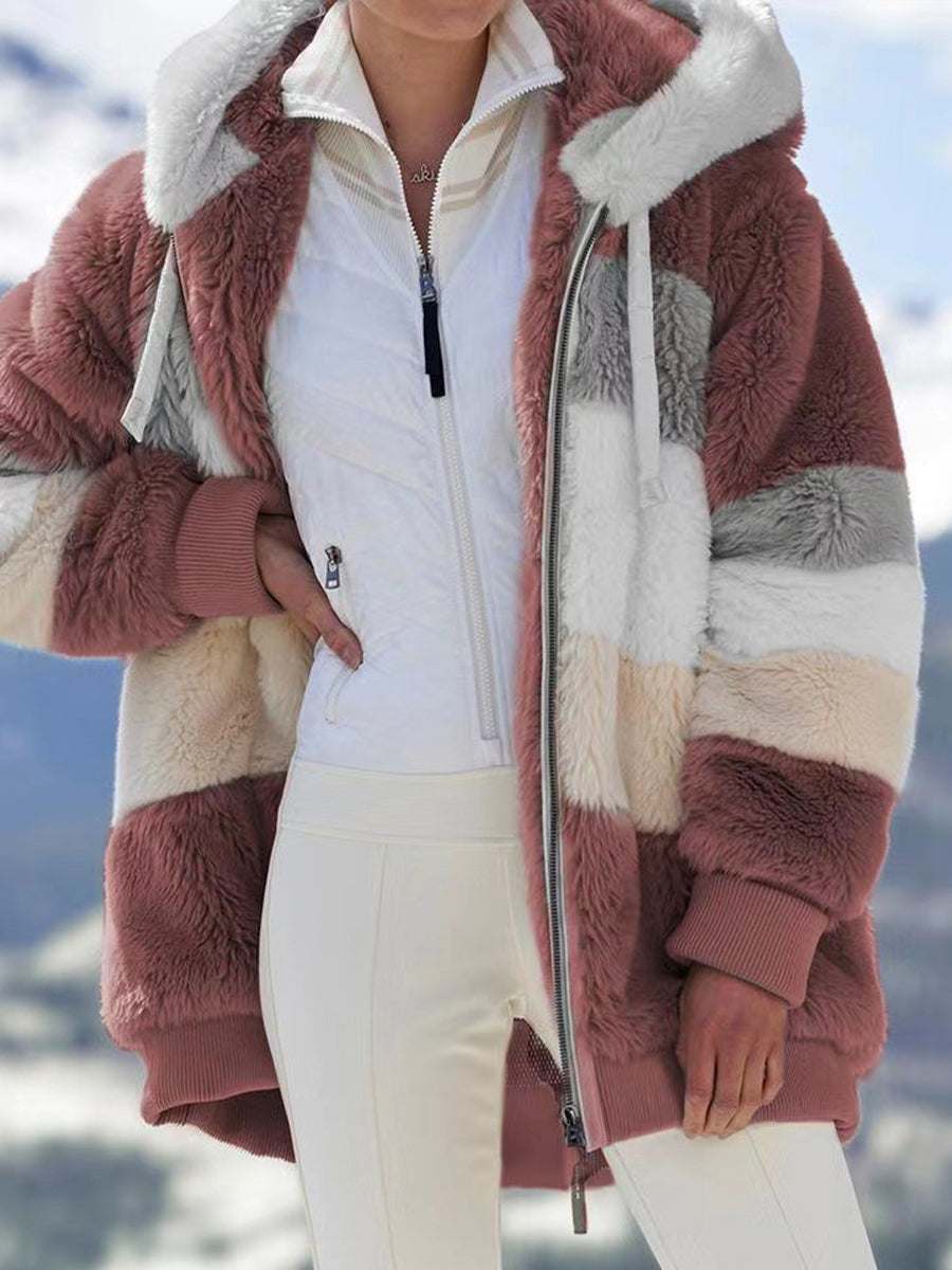 Жените реколта топло плюшено пачук цип джоб качулка хлабав яке
