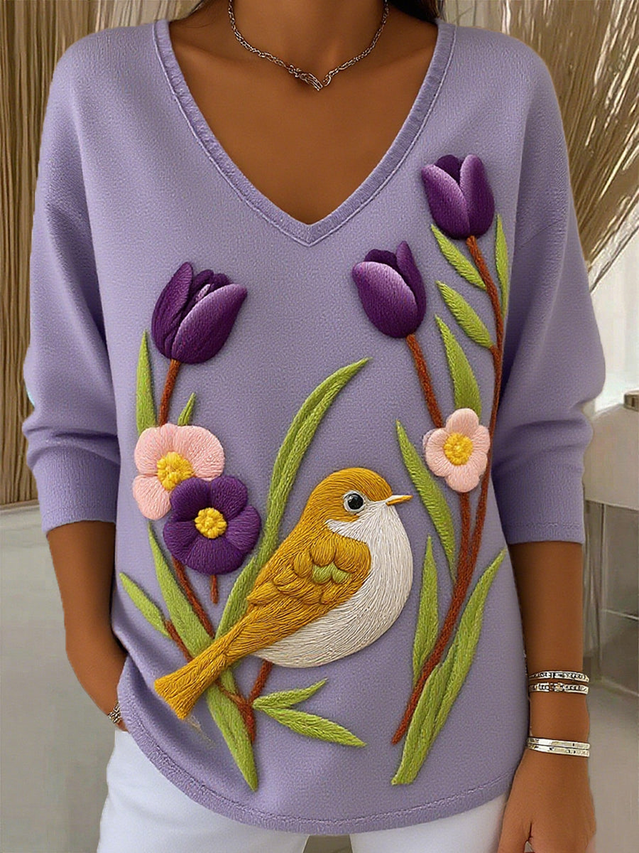 Жените артистични животински печат удобен плетене с къс ръкав отгоре