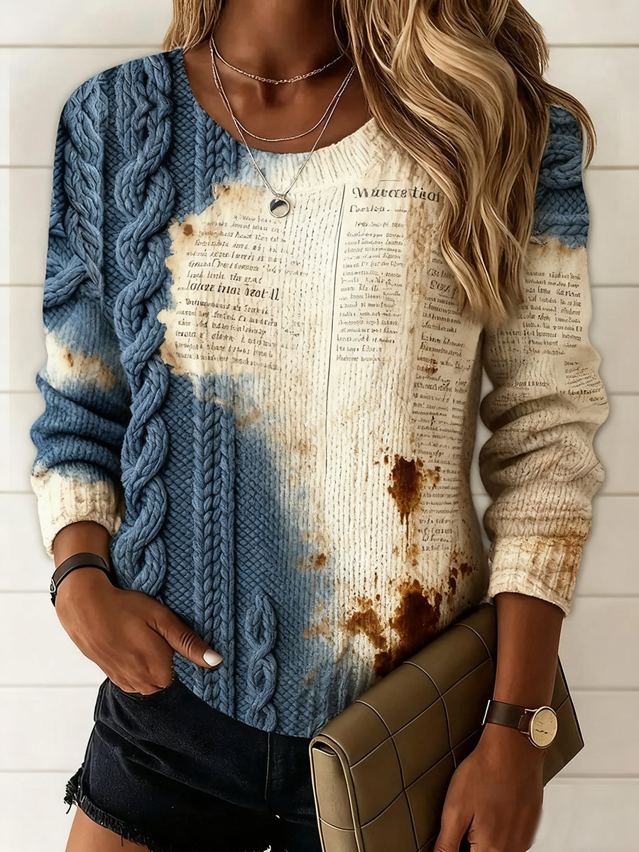 Жените реколта цветен изкуство печат случайни комфорт пуловер