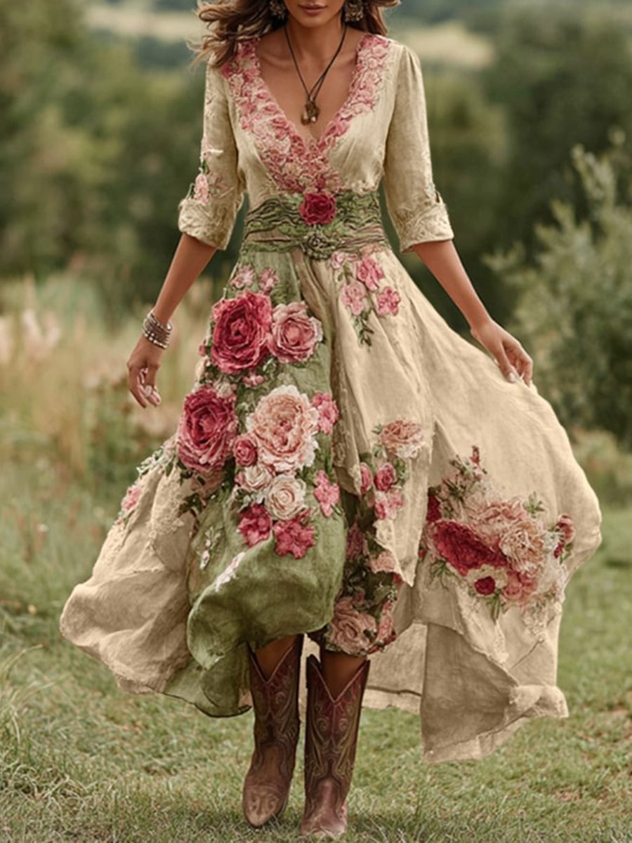 Жените реколта цветен комфорт midi рокля