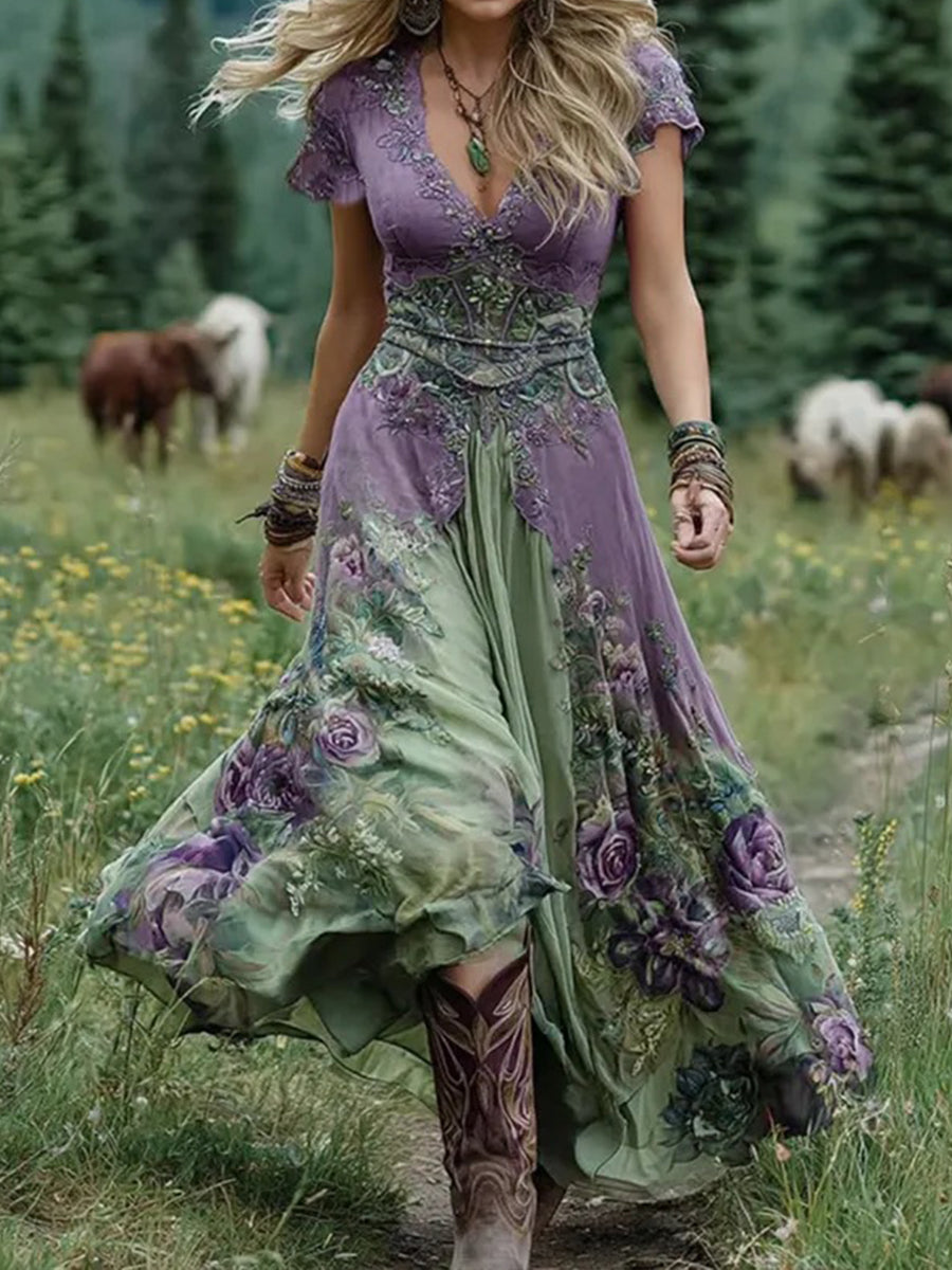 Жените реколта цветен комфорт midi рокля