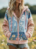 Жените реколта цветен печат с цип комфорт качулка суитчър