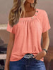 Жените случайни кръг врата плътен цвят елемент бутон къс ръкав топ тениска