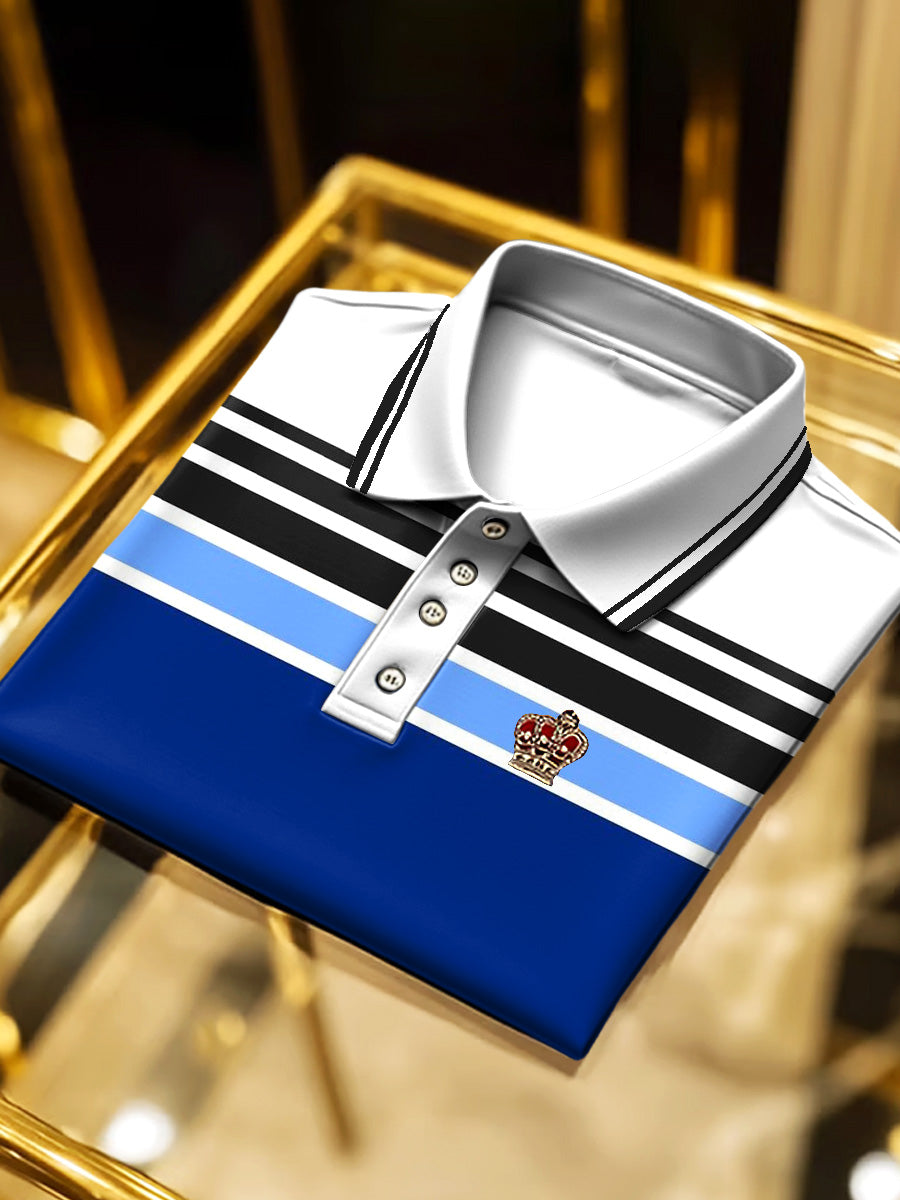 Класическа раирана бизнес поло за мъже с къс ръкав