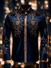 Мъжки ретро етнически печат висока яка половин цип дълъг ръкав отгоре
