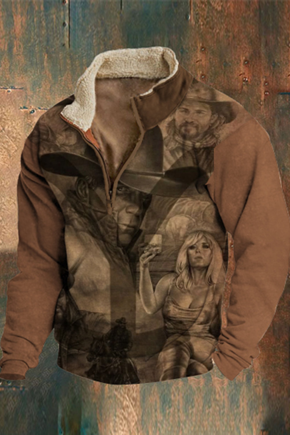Мъжки козина яка цип ретро класически западен каубой 3d печат флъш открито суитчър