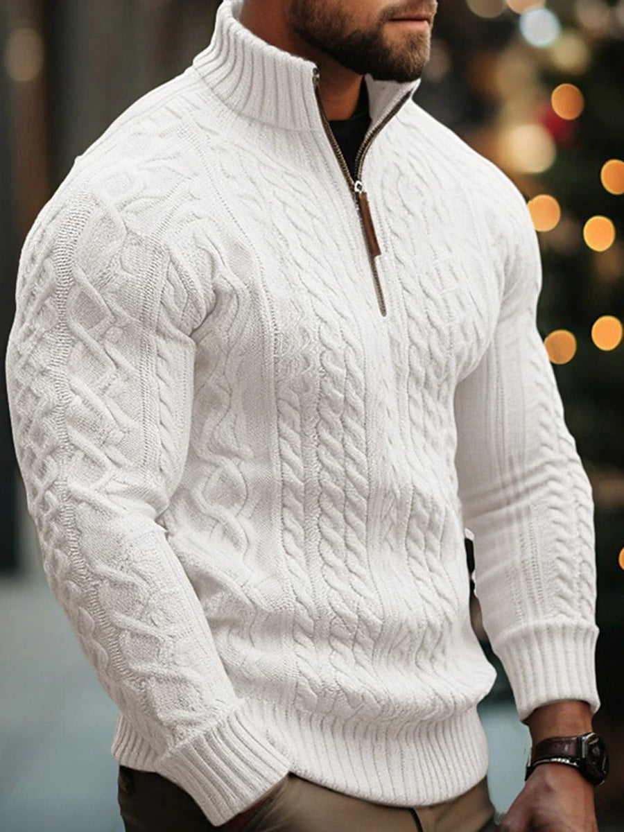 Мъжки половин цип яке плътен цвят удебелен удобен пуловер