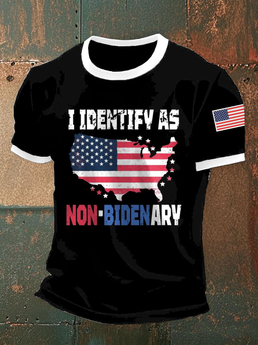 Мъжки реколта аз се идентифицират като не bidenary абстрактен печат случайни памук къс ръкав тениска