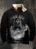 Мъжки ретро western печат висока врата половин цип с дълъг ръкав отгоре