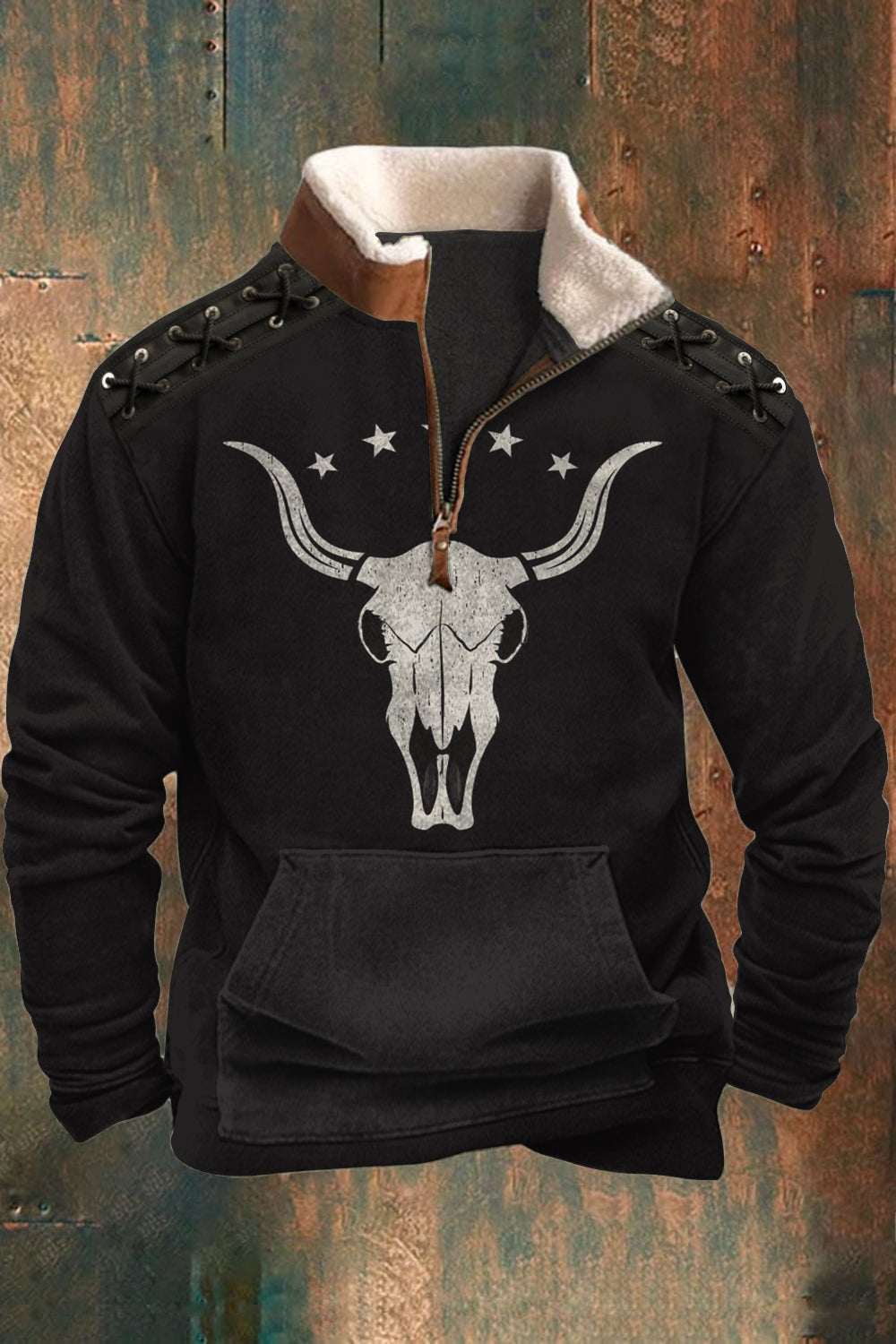 Мъжки реколта модерен западен каубой стил 3d печат козина яка цип флъш открито суитчър