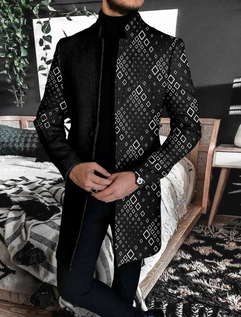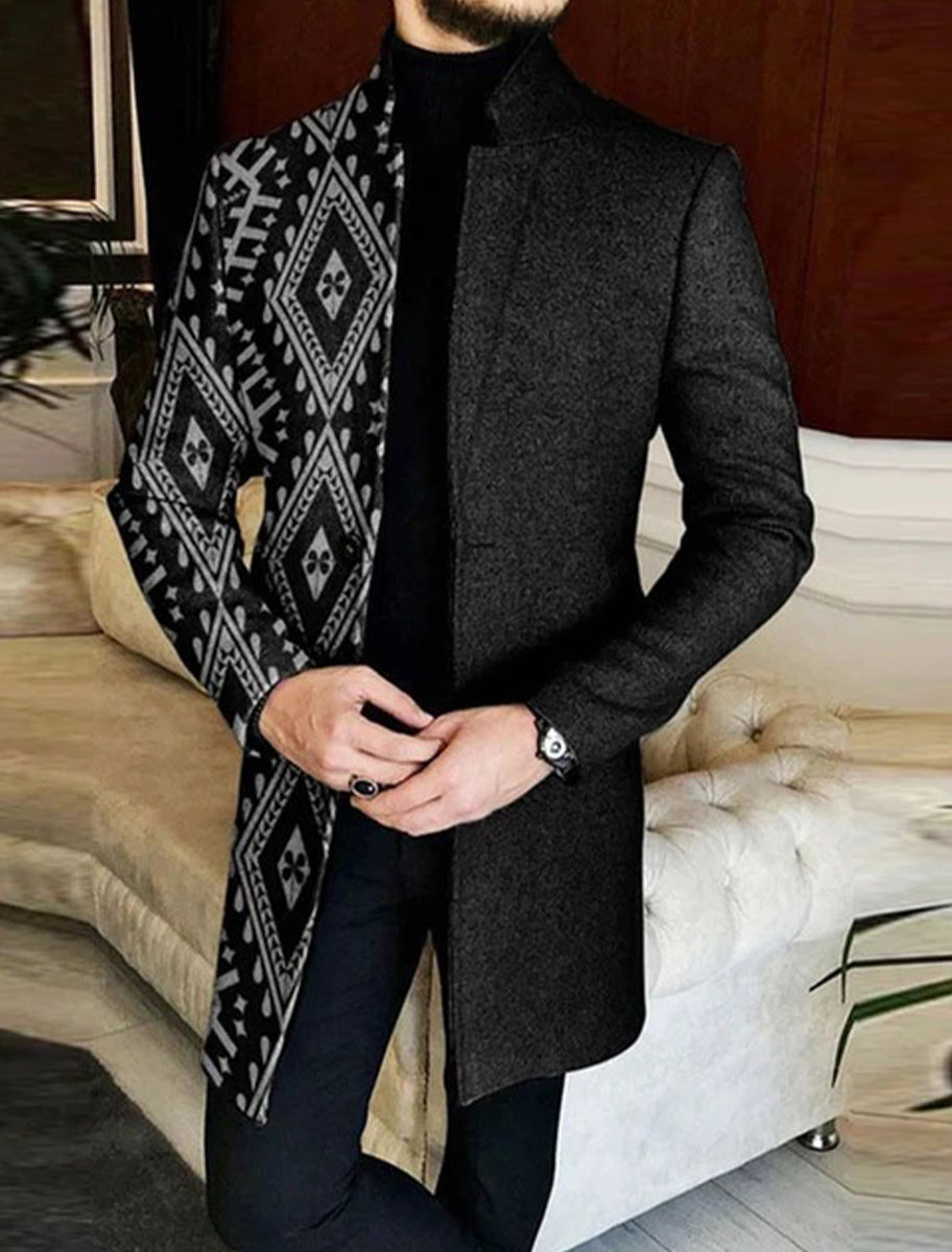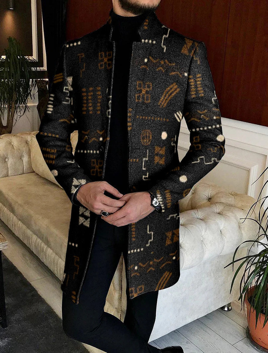 Мъжки ретро етнически печат висока яка половин цип дълъг ръкав отгоре