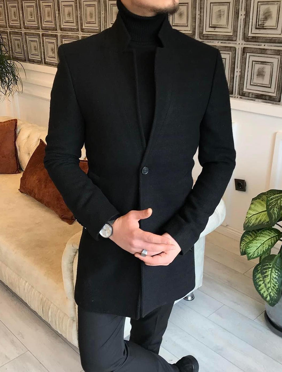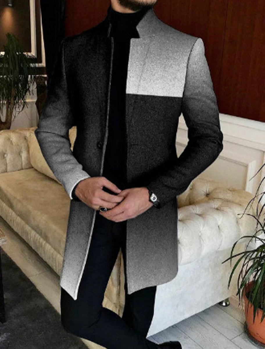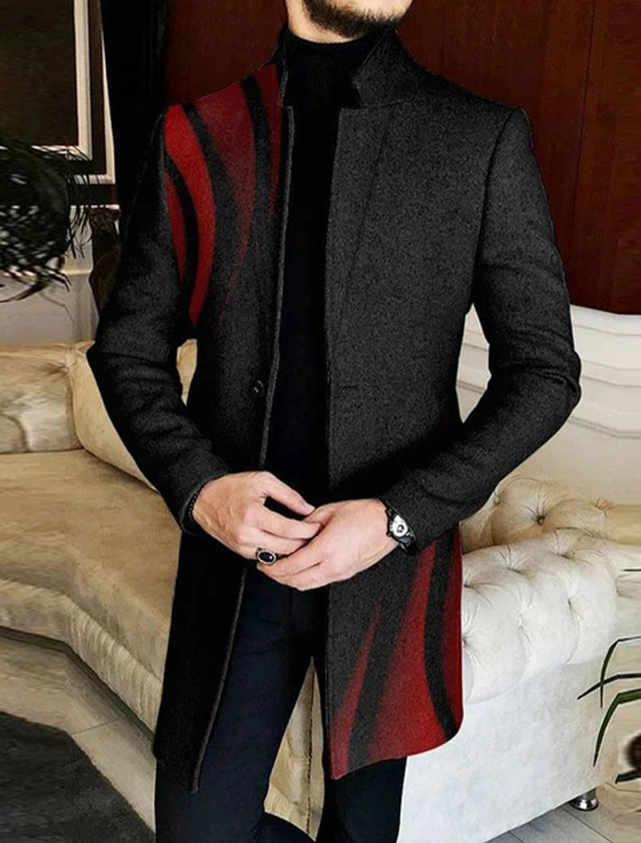 Мъжки ретро етнически печат висока яка половин цип дълъг ръкав отгоре