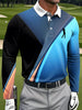 Мъжки ретро многоцветен геометричен печат на изкуството случайни поло с дълги ръкави