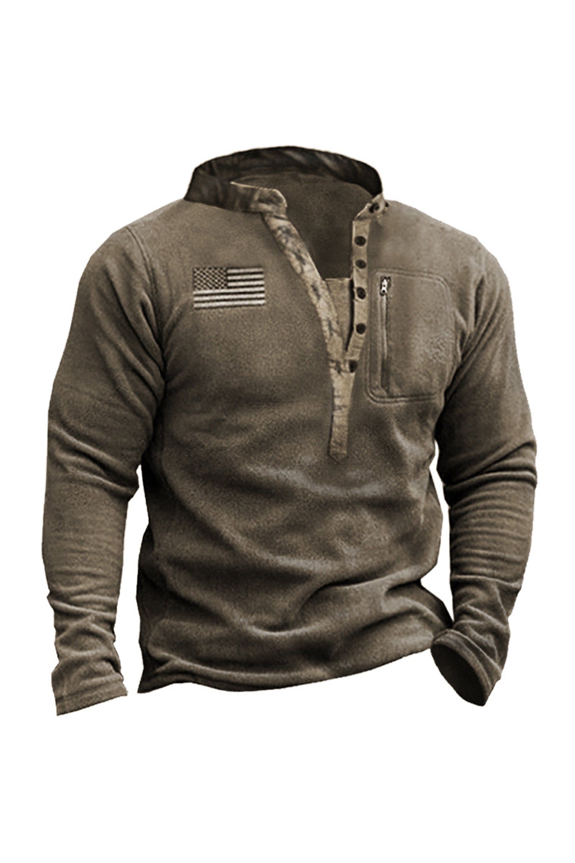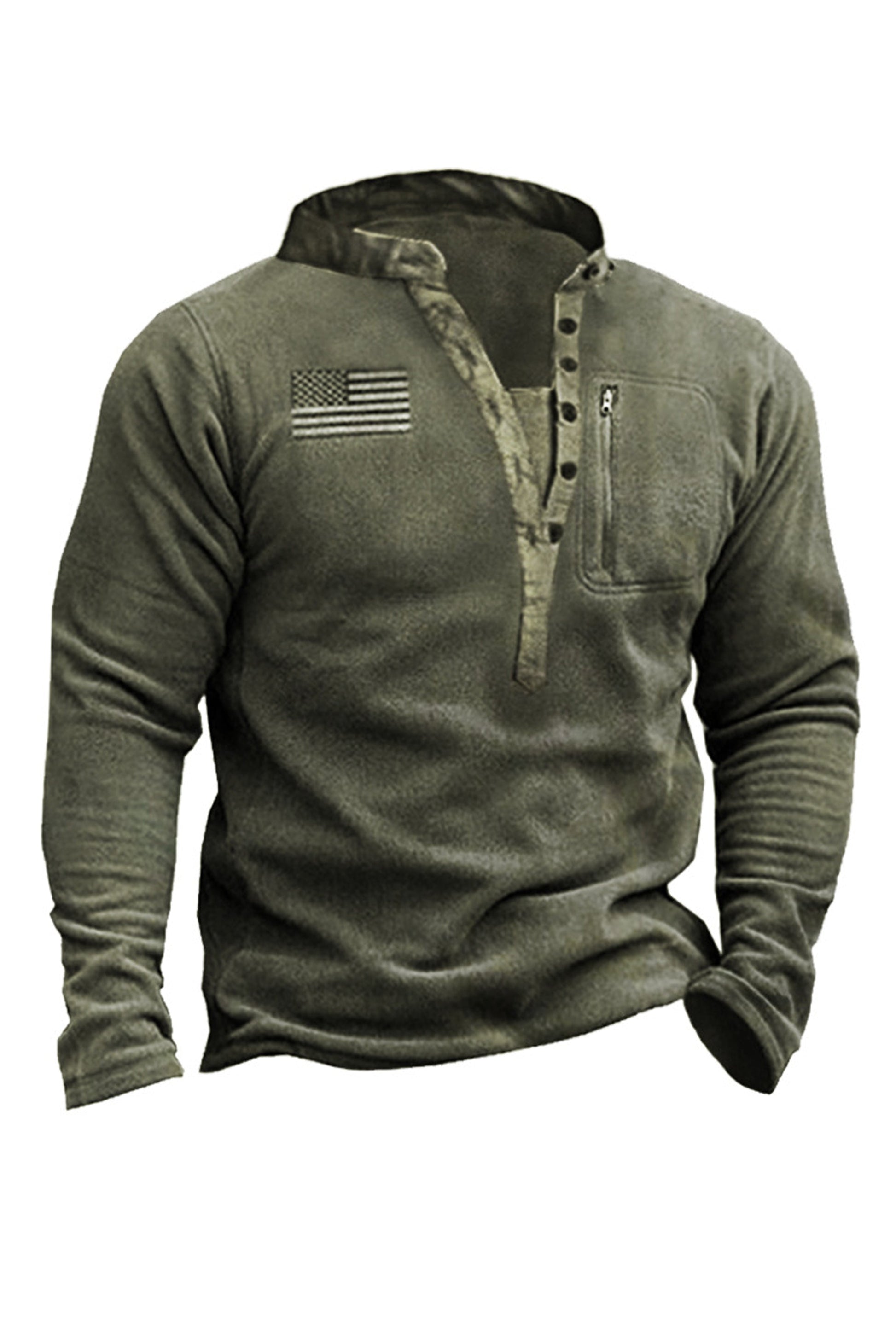 Мъжки "свободата не е безплатна" американски флаг печат случайни суитчър с дълги ръкави