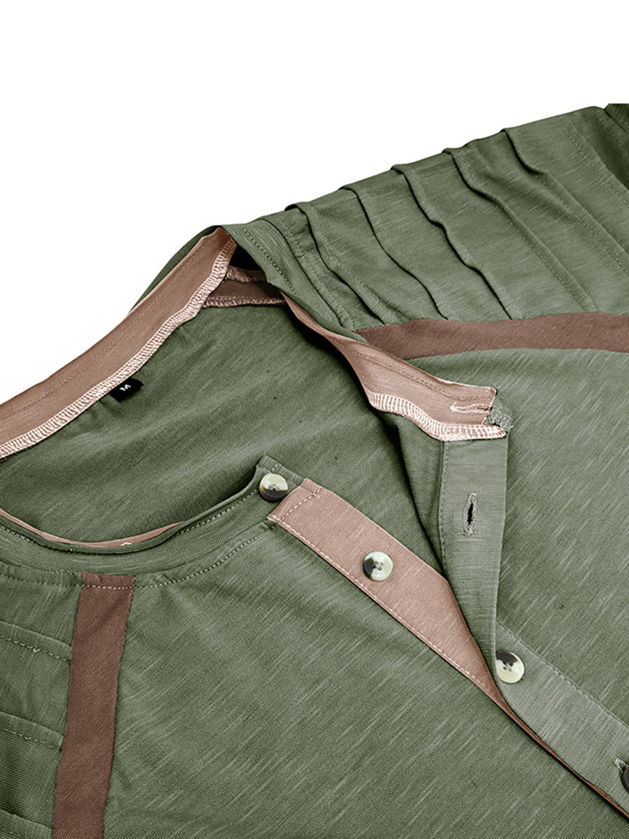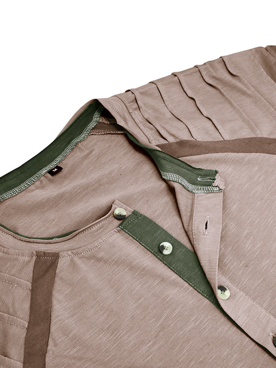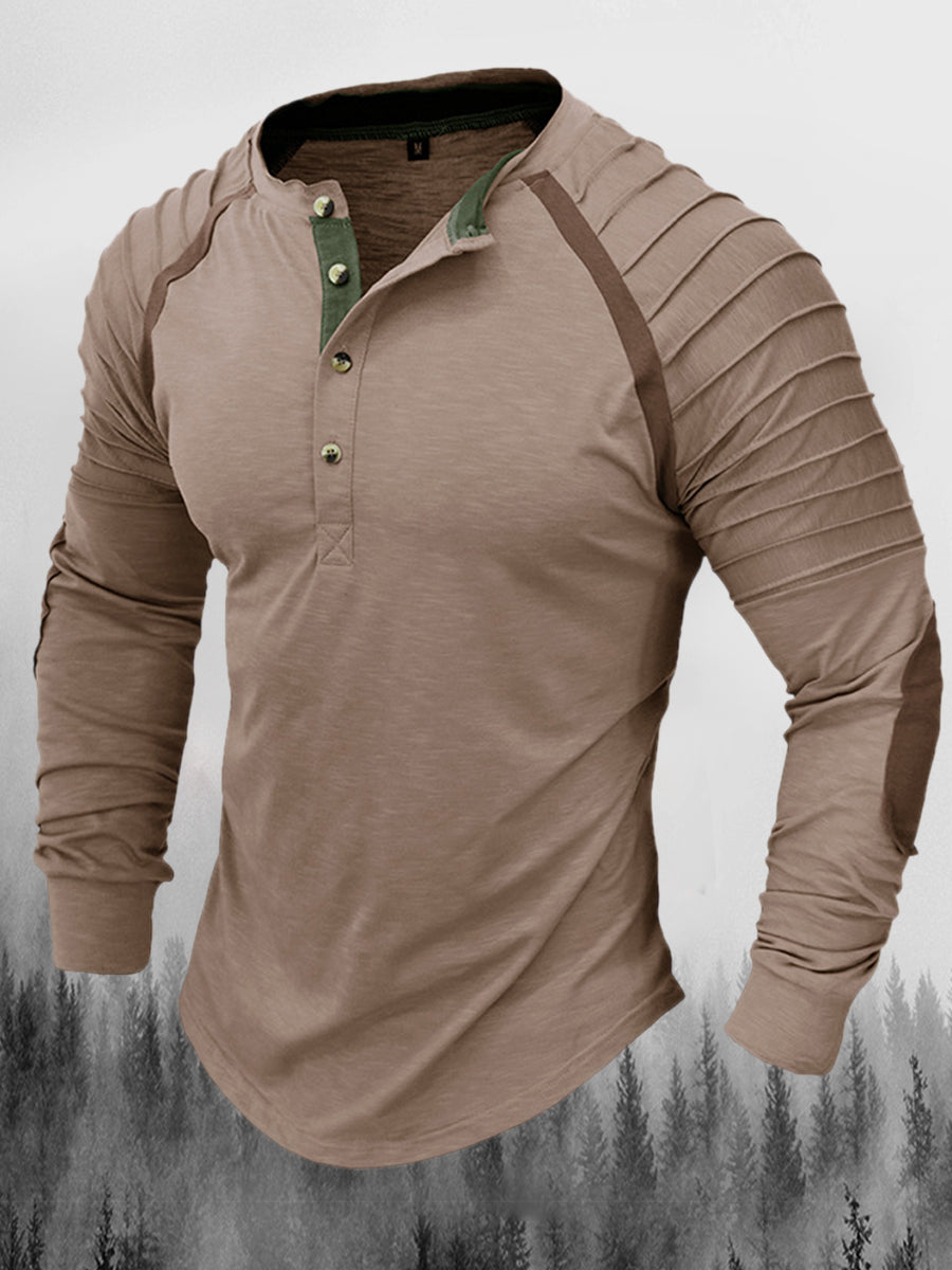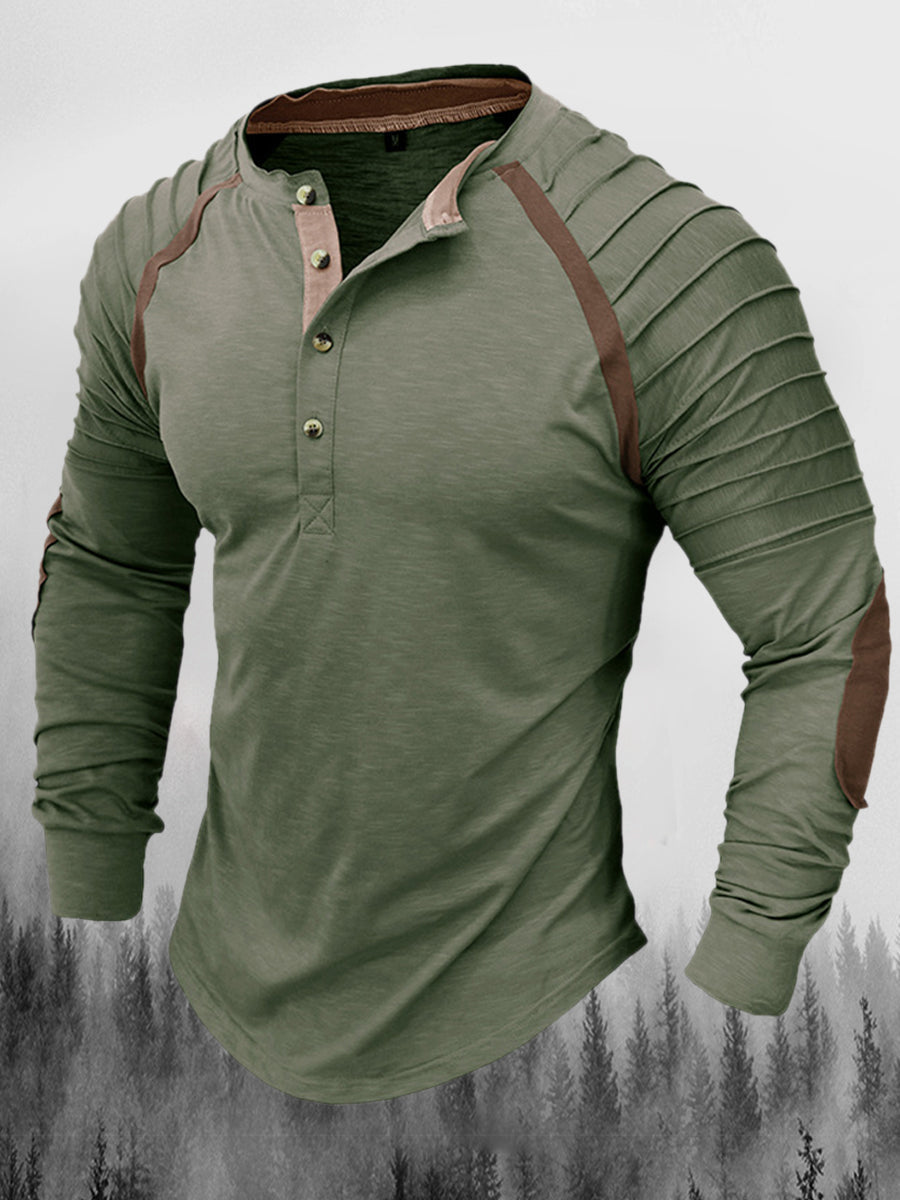 Реколта пликирани шевове печатни ревера бутон хенри яка удебелена суитчър