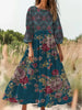 Ретро бохо цветен печат реколта шик кръгла врата памук с дълги ръкави midi рокля