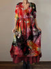 Ретро бохо цветен печат реколта v-neck двойна линия памук с дълги ръкави midi рокля