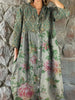 Ретро бохо цветни изкуство печат реколта шик v-врата бутон до дълъг ръкав midi рокля
