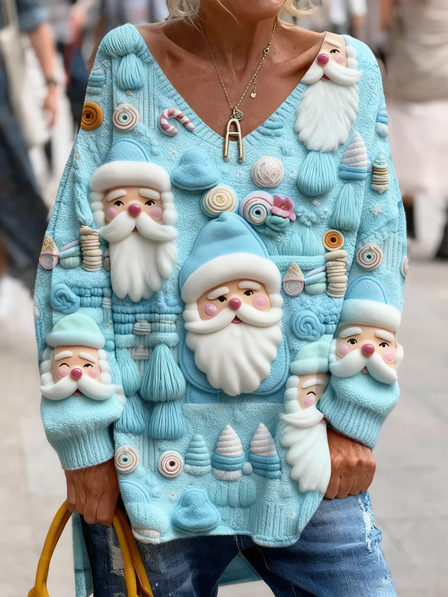 Ретро коледа забавно и сладък печатни модерен екипаж врата отгоре