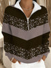 Дамски модерен кафяво-сив шеврон модел щанд яка суитчър