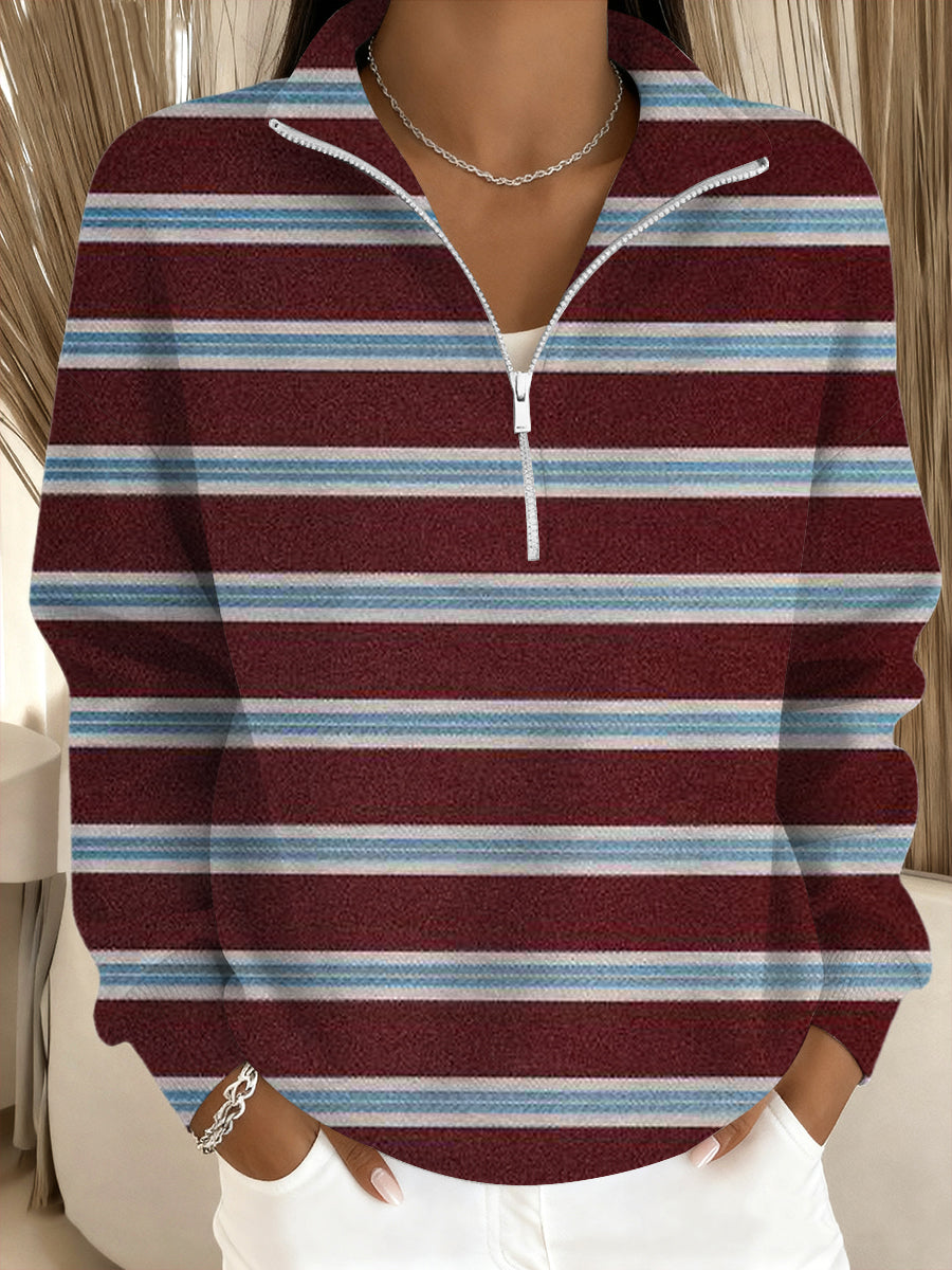 Дамски стилна бордо ивица щанд-яка суитчър