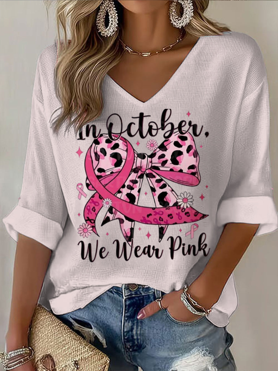 Жените леопард пеперуда рак на гърдата тема случайни v-врата къса тениска
