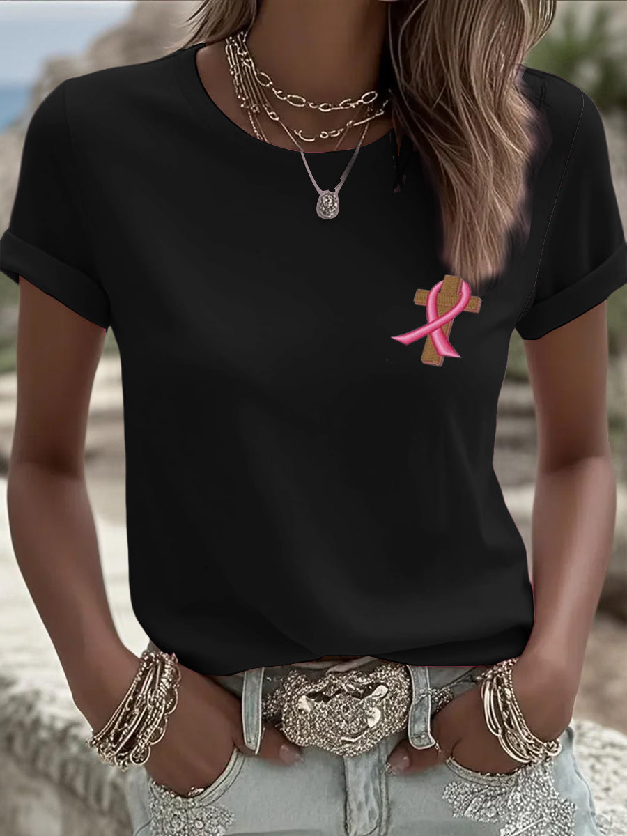 Жените минималистичен малък етикет панделка печатни случайни къси ръкави риза