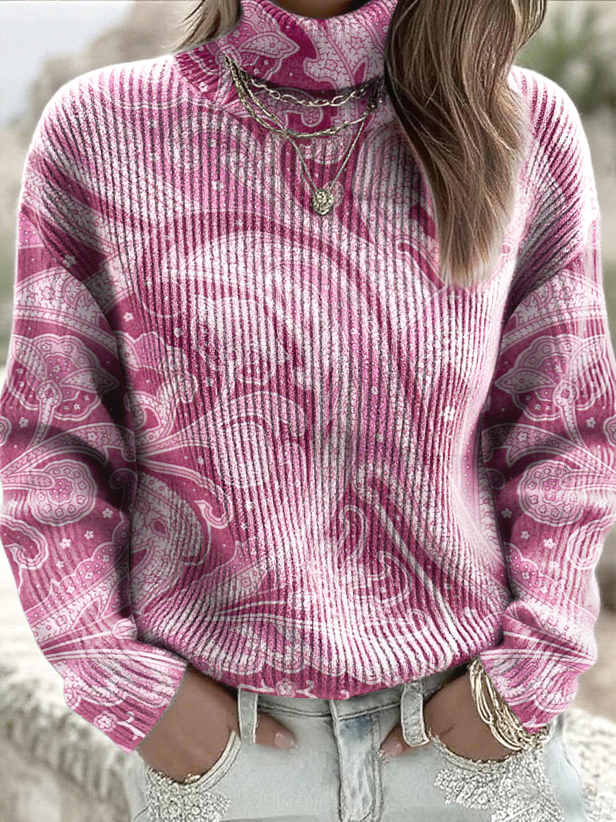 Мъжки ретро western печат висока врата половин цип с дълъг ръкав отгоре
