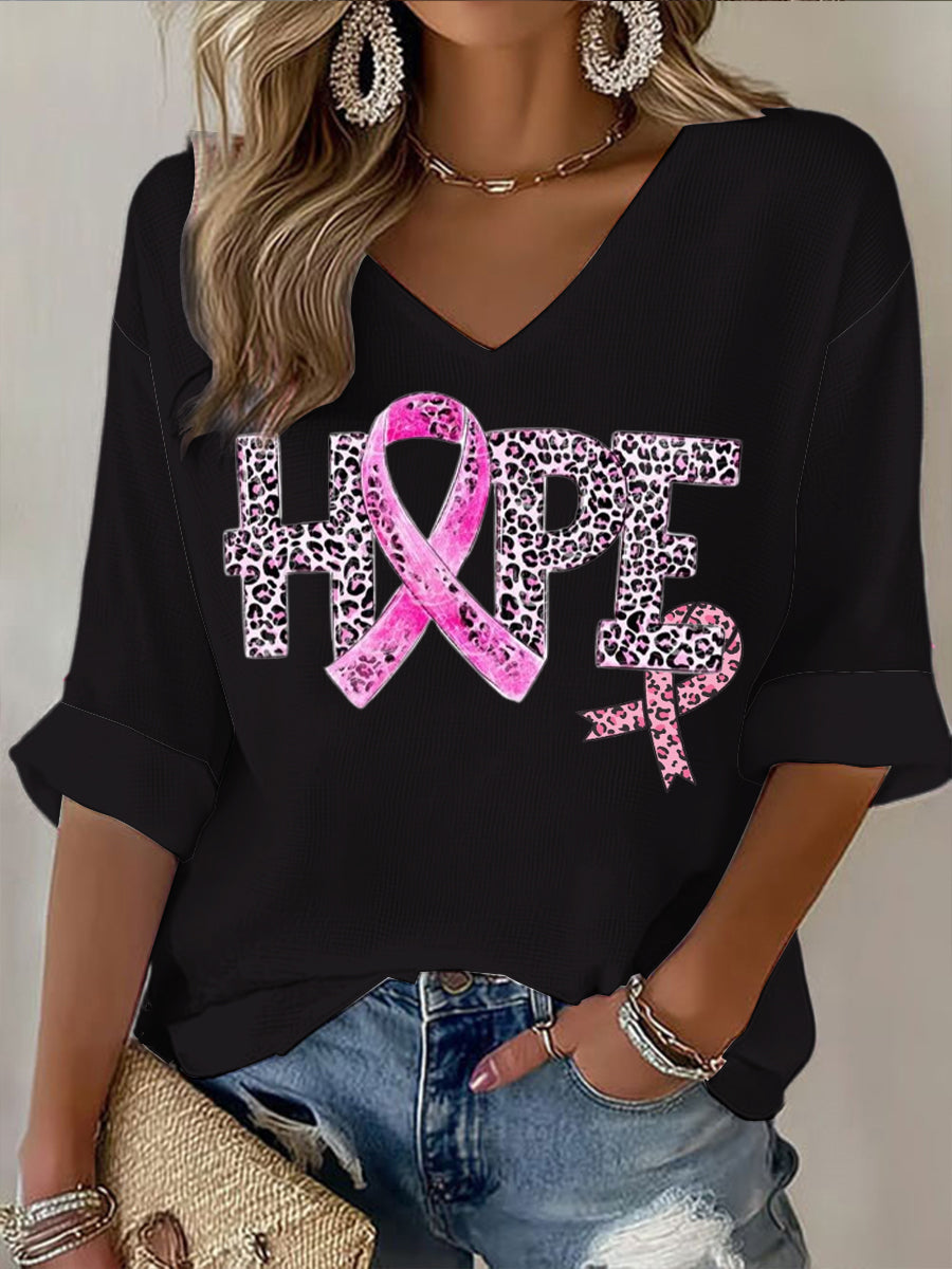 Жените розов леопард печат v-neck с дълги ръкави риза