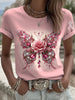 Жените артистични животински печат удобен плетене с къс ръкав отгоре