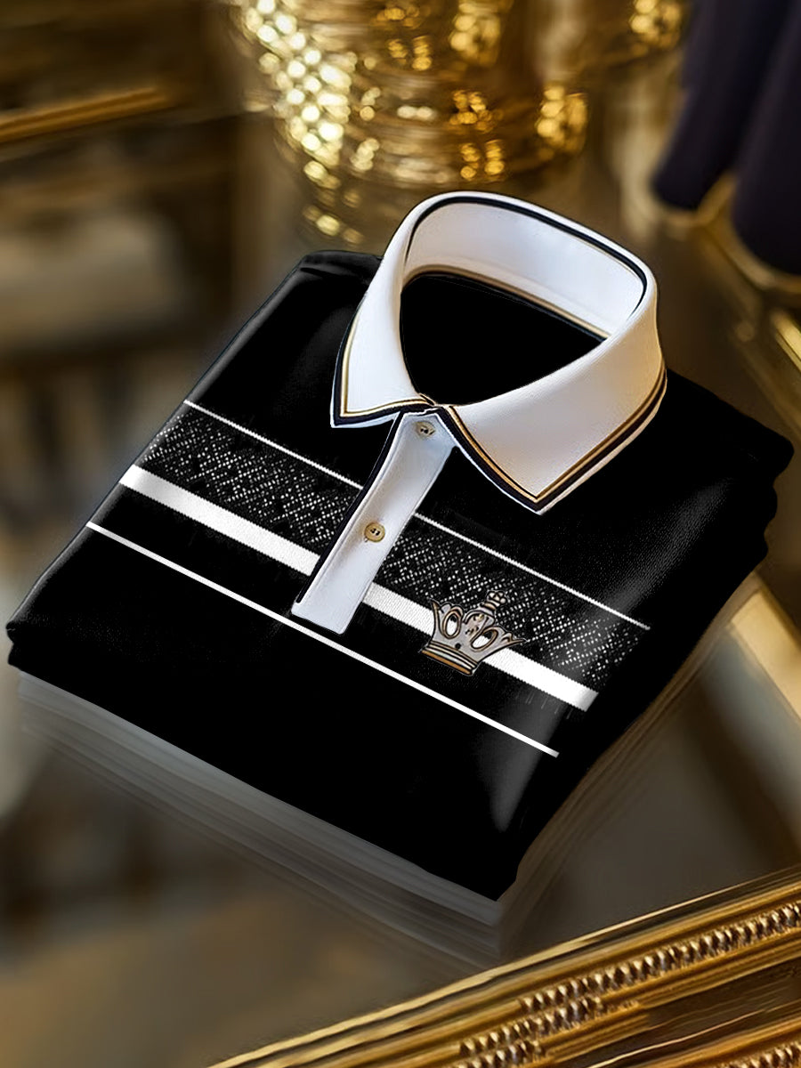 Класическа арт ивица сплайсиране печат бизнес с къси ръкави поло риза