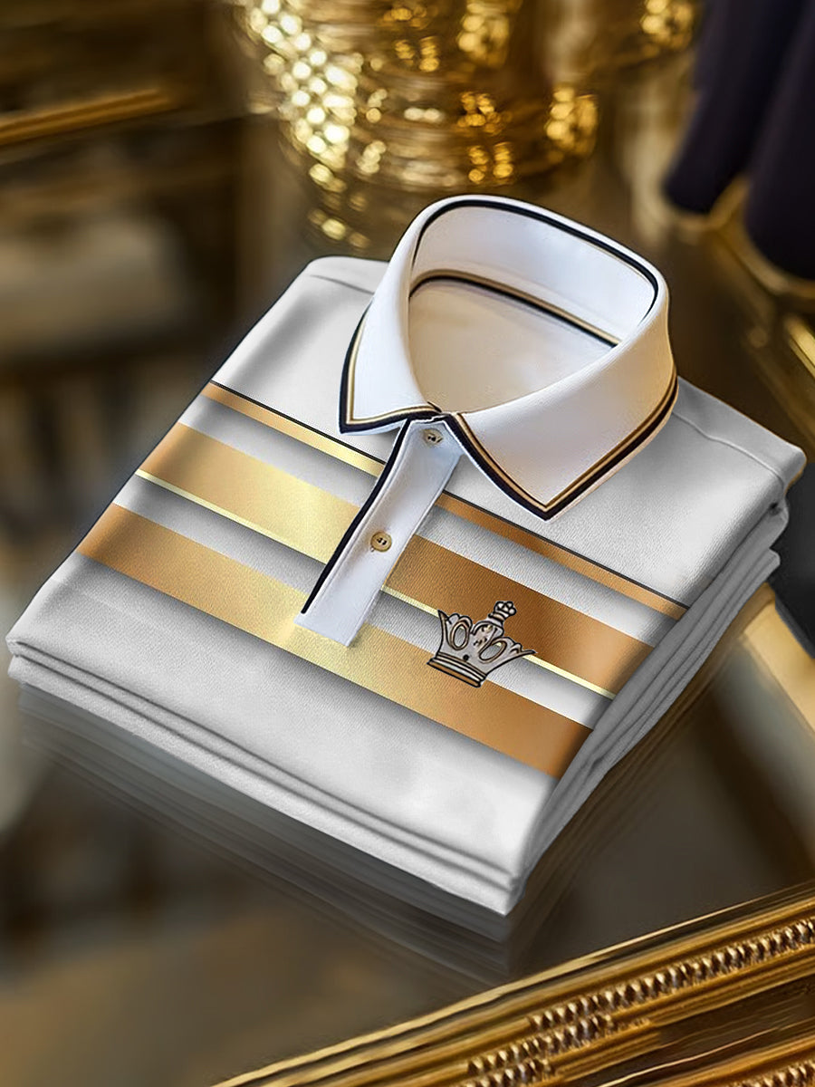 Класическа ивица изкуство печат бизнес с къси ръкави поло риза