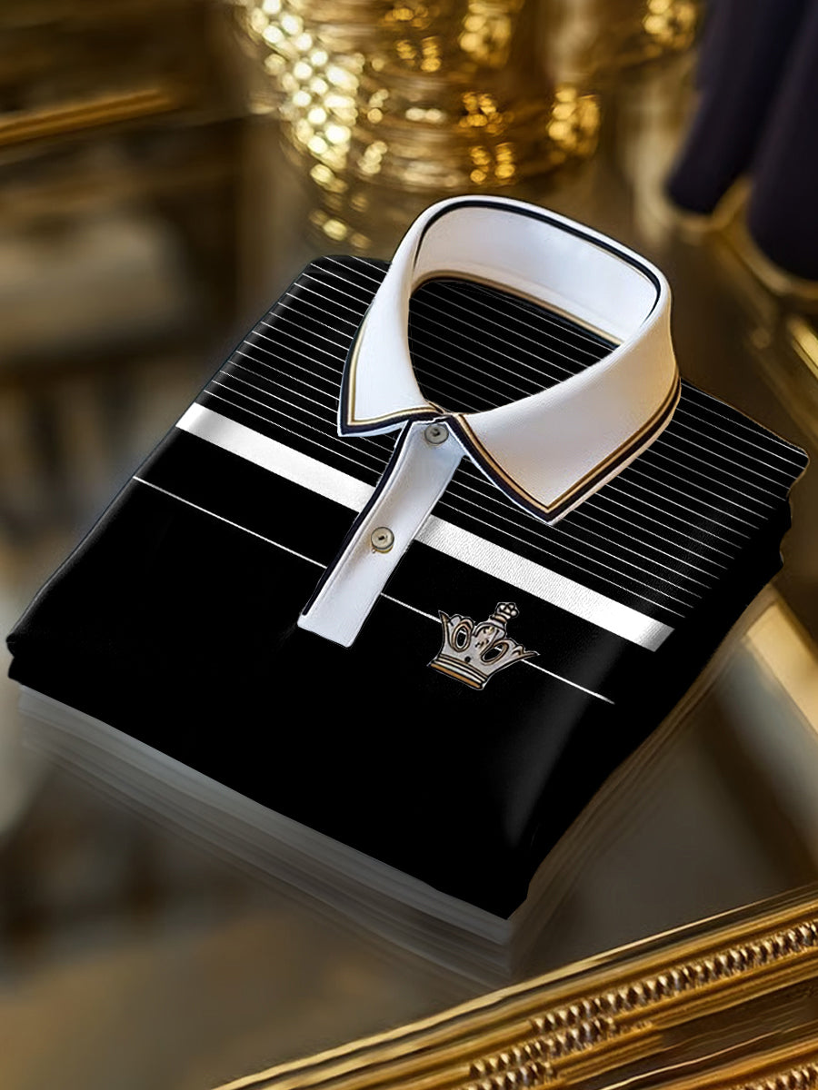 Класическа ивица изкуство печат бизнес с къси ръкави поло риза