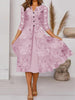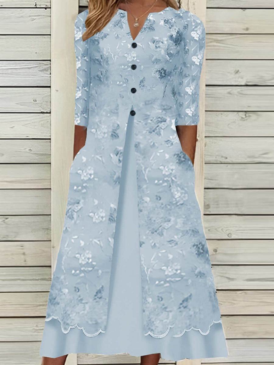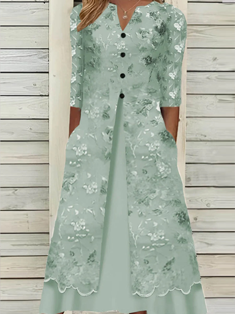 Дамски цветни изкуство печат джоб v-neck средата ръкав рокля