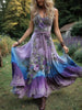 Ретро селски цветни изкуство печатни реколта v-neck без ръкави комфортна макси рокля