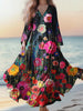Ретро бохо цветен апликация печат реколта шик v-врата памук с дълги ръкави midi рокля
