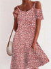 Дамски ретро флорален печат хлабав от рамото мини рокля